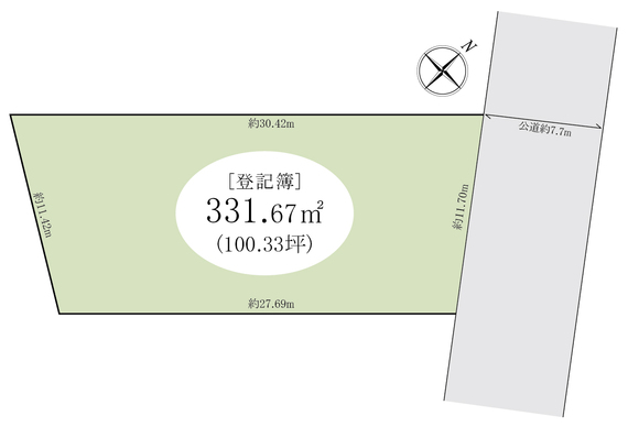 | 土地面積 | 331.67m2(公簿) | 坪数 | 100.33坪 |