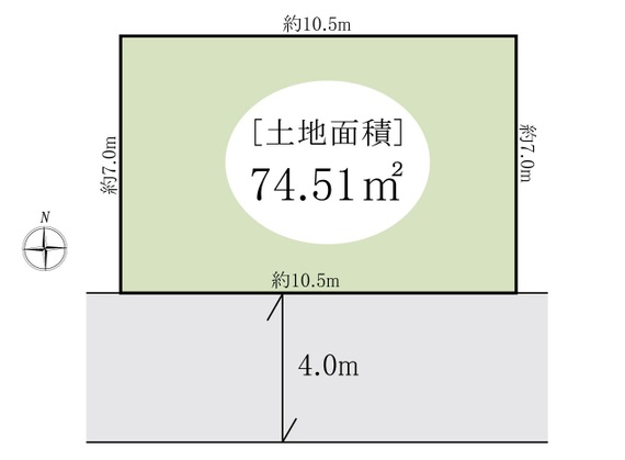 | 接道状況 | 一方 南側 間口10.5m 公道 幅4.0m |