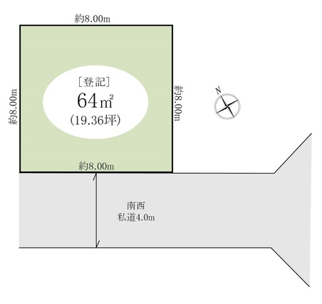 | 接道状況 | 一方 南西側 間口8.0m 私道 幅4.0m |