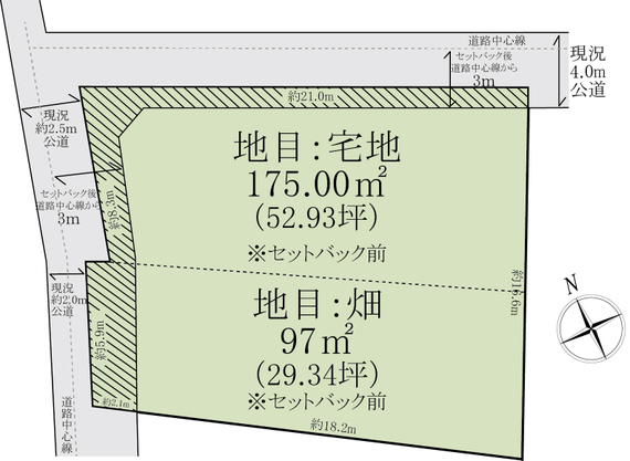 | 建築条件 | 無し | 接道状況 | 角地 北側 公道 幅3.0m 間口1m |