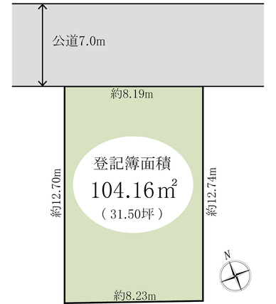 | 土地面積 | 104.16m2(公簿) | 坪数 | 31.51坪 |