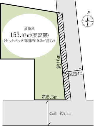| 建築条件 | 無し | 接道状況 | 角地 南側 間口5.3m 公道 幅9.2m 南側 間口1m |