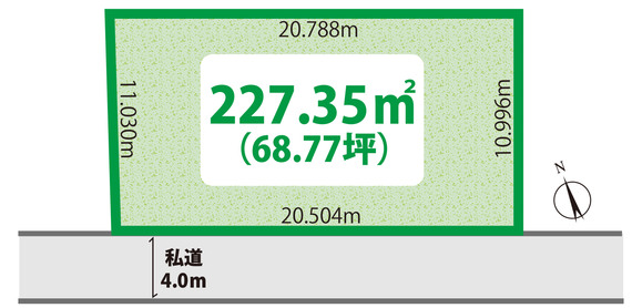 | 接道状況 | 一方 南側 間口20.5m 私道 幅4.0m |