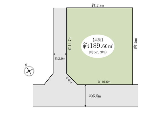 | 土地面積 | 189.6m2(実測) | 坪数 | 57.35坪 |