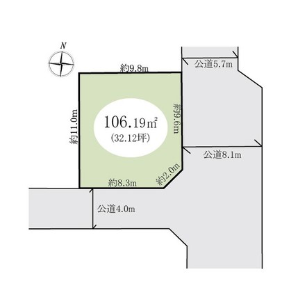 | 土地面積 | 106.19m2(公簿) | 坪数 | 32.12坪 |