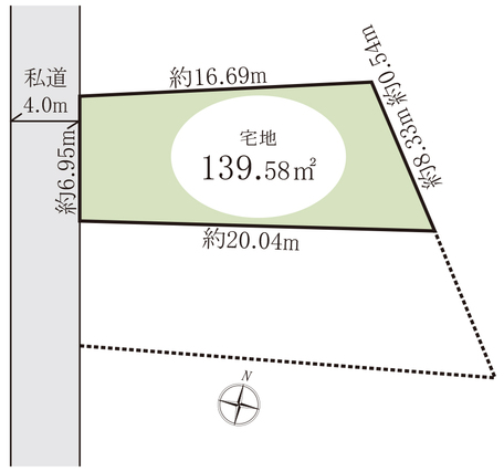 | 建築条件 | 無し | 接道状況 | 一方 西側 私道 幅4.0m |