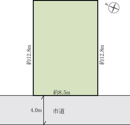 建築条件無し接道状況一方 南西側 間口8.5m 公道 幅4.0m