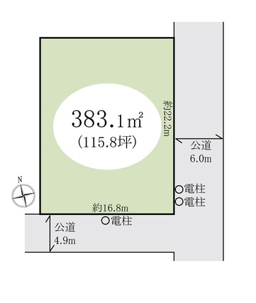 | 土地面積 | 383.1m2(公簿) | 坪数 | 115.89坪 |