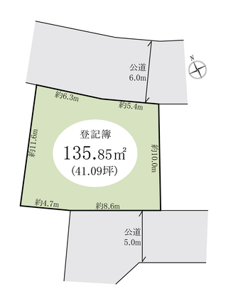 | 土地面積 | 135.85m2(公簿) | 坪数 | 41.09坪 |
