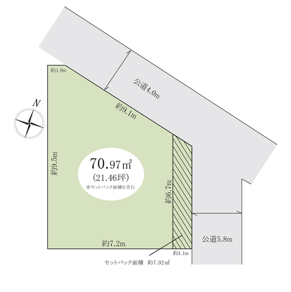 | 土地面積 | 70.97m2(実測) | 坪数 | 21.47坪 |