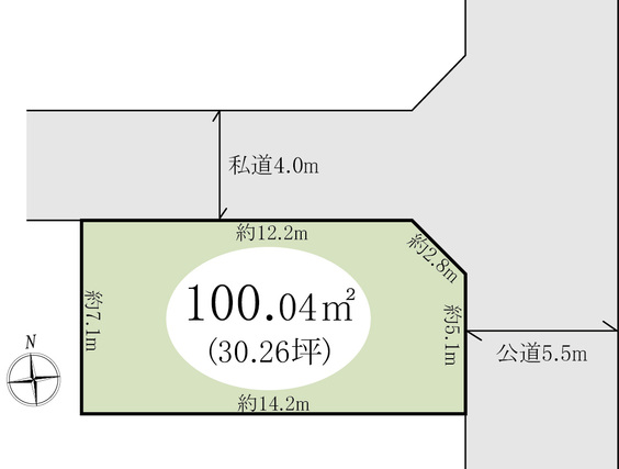 | 接道状況 | 角地 東側 公道 幅5.5m 間口1m 位置指定:有 |