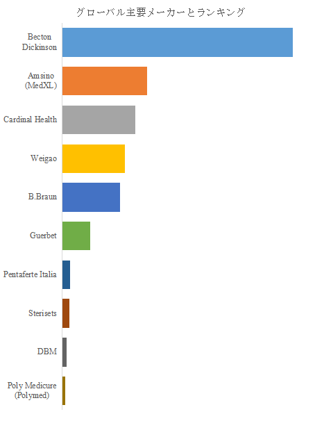 YH Researchのトップ企業研究センターによると、充填済み生理食塩水シリンジの世界的な主要製造業者には、Becton Dickinson、Amsino (MedXL)、Cardinal Healthなどが含まれている。2024年、世界のトップ3企業は売上の観点から約62.0%の市場シェアを持っていた。これらの企業は、製品性能、コスト競争力、信頼性を高めるために技術革新を推進しており、品質の向上や製造プロセスの効率化を図ることに注力している。例えば、新しい製造技術やより精密な滅菌プロセスの導入、安定した供給体制の確立が競争優位性を高める要素となっている。