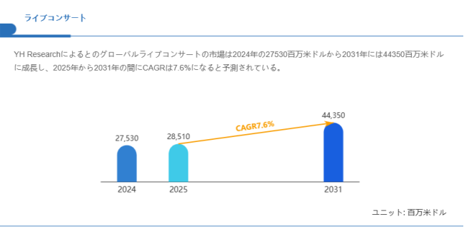 グローバルライブコンサート市場は今後も拡大が続き、長期的に高い成長性が期待されています。