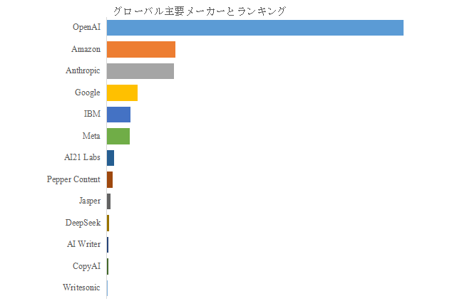 これらの企業は、単なるテキスト生成アルゴリズムではなく、「モデル×プラットフォーム×エコシステム」を総合的に展開している点で共通している。たとえばOpenAIはAPIエコノミーを通じて開発者と企業の利用基盤を拡大し、GoogleはGeminiシリーズで多言語・マルチモーダル対応を推進している。新興勢力であるAI21 LabsやPepper Contentは、特定領域特化型AIによって差別化を図る。結果として、市場は「汎用モデル主導」と「特化型AI共存」の二極構造へと進化している。