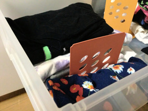 衣類をしまう場合はブックエンドやかごで仕切りを作れば衣類が一目瞭然です。