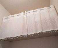 突っ張り棒とカフェカーテンでごちゃごちゃした棚を目隠し。真ん中に切れ目が入ってると取り出しやすくて便利。
