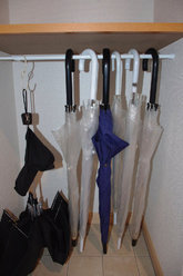 傘立てを置く代わりに、玄関収納庫につっぱり棒