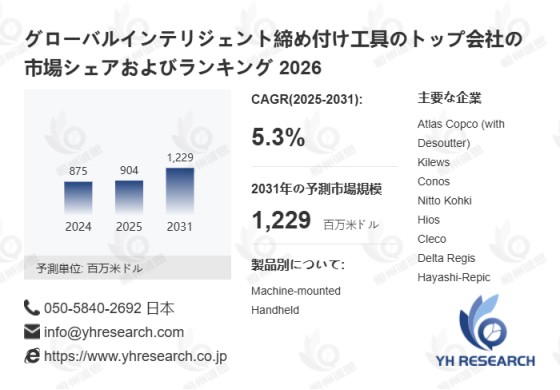 本記事は、YH Researchが発行したレポート「グローバルインテリジェント締め付け工具のトップ会社の市場シェアおよびランキング 2026」 を紹介しています。