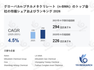 本記事は、YH Researchが発行したレポート「グローバルn-ブチルメタクリレート(n-BMA)のトップ会社の市場シェアおよびランキング 2026」 を紹介しています。