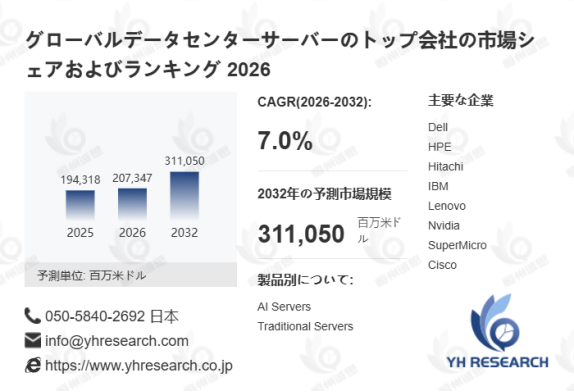 本記事は、YH Researchが発行したレポート「グローバルデータセンターサーバーのトップ会社の市場シェアおよびランキング 2026」 を紹介しています。