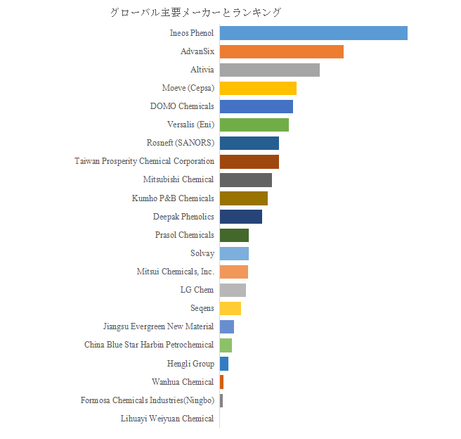 AMS市場の供給構造は高い集中度を示しており、2024年時点でIneos Phenol、AdvanSix、Altivia、Moeve (Cepsa)、DOMO Chemicals、Versalis (Eni)、Taiwan Prosperity Chemical Corporation、Rosneft (SANORS)、Mitsubishi Chemical、Kumho P&B Chemicalsといった企業が、売上ベースで世界シェアの約71%を占めている。これらの企業はフェノール・アセトンバリューチェーンを強固に持つため、AMS供給においてコスト競争力と安定供給力を兼ね備えている点が特徴である。特に欧州とアジアの企業は高純度製品の強化に注力し、北米企業は一貫生産体制による効率化で市場をリードしている。この寡占構造が市場安定を支える一方、差別化技術をめぐる競争の激化も市場のダイナミズムを生み出している。