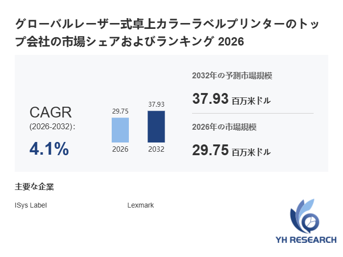 2026年1月26日に、YH Research株式会社(本社:東京都中央区)が発行した「グローバルレーザー式卓上カラーラベルプリンターのトップ会社の市場シェアおよびランキング 2026」によると、本調査レポートでは、レーザー式卓上カラーラベルプリンター市場の現状、定義、分類、用途、産業チェーン構造を総合的に分析し、開発方針、製造プロセス、コスト構造についても詳細に説明します。レーザー式卓上カラーラベルプリンター市場の成長動向と今後の市場予測に加え、技術革新や市場競争環境、消費者行動の変化など市場に影響を与える重要な要因を考察します。また、主要生産地域、消費地域、及び主要企業の生産・消費の観点から、市場動向を深く理解し、企業が新規市場の開拓や競争力強化に向けた戦略を立てるための有益な情報を提供します。