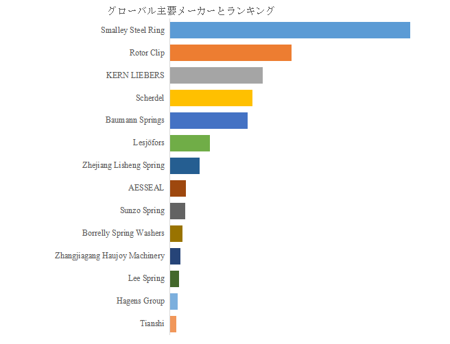 現在、グローバルにおいてウェーブスプリングの主要な製造者には、Smalley Steel Ring、Rotor Clip、KERN LIEBERS、Scherdel、Baumann Springs、Lesjöfors、Zhejiang Lisheng Spring、AESSEAL、Sunzo Spring、Borrelly Spring Washers などが挙げられている。特に、2024年時点で世界のトップ5企業(売上ベース)が約 46.0% の市場シェアを占めており、部分的に寡占が進んでいる状況である。なかでもSmalley Steel Ring は、平線材をエッジワインド(edge-wound)する独自技術により、工具(型)不要で多様サイズ・形状のウェーブスプリングを迅速に提供できる点で強みを持っている。一方、KERN LIEBERS はヨーロッパを拠点に、グローバル展開で成長を続けており、Scherdel、Baumann Springs、Lesjöfors なども、それぞれの地域で堅実に顧客基盤を拡大している。こうした複数の大型メーカーの存在が、市場全体の信頼性と供給安定性を支えている。