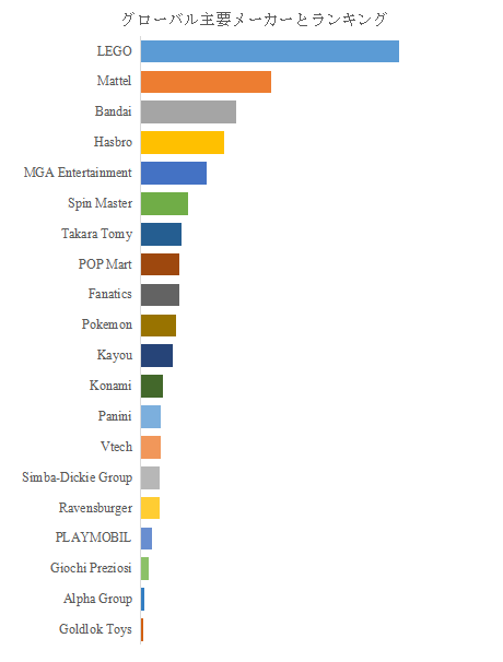 YH Researchのトップ企業研究センターによると、おもちゃの世界的な主要製造業者には、LEGO、Mattel、Bandai、Hasbro、MGA Entertainment、Spin Master、POP Mart、Takara Tomy、Fanatics、Pokemonなどが含まれている。2024年、世界のトップ10企業は売上の観点から約46.0%の市場シェアを持っていた。