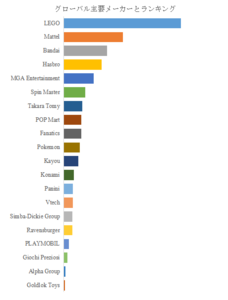 YH Researchのトップ企業研究センターによると、おもちゃの世界的な主要製造業者には、LEGO、Mattel、Bandai、Hasbro、MGA Entertainment、Spin Master、POP Mart、Takara Tomy、Fanatics、Pokemonなどが含まれている。2024年、世界のトップ10企業は売上の観点から約46.0%の市場シェアを持っていた。