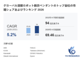 世界の溶接ロボット教示ペンダント市場を牽引する企業の基本情報、製品ポートフォリオ、事業戦略、売上・利益率などを分析し、競争力や市場での立ち位置を把握可能です。