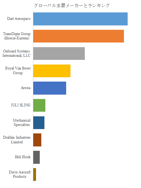 カーゴフック市場には、グローバルで複数の主要サプライヤーが存在し、それぞれが異なる戦略で市場に臨んでいる。YH Researchのトップ企業研究センターによると、カーゴフックの世界的な主要製造業者には、Dart Aerospace、TransDigm Group (Breeze-Eastern)、Onboard Systems International, LLCなどが含まれている。2024年、世界のトップ3企業は売上の観点から約16.0%の市場シェアを持っていた。また、それ以外の中堅特殊フックメーカーも多く、用途、認証、地域、用途特化などで役割分担が進んでいる。これら企業の中で、DART Aerospace や Onboard Systems、Mechanical Specialties は、認証取得済みカーゴフックおよび外部バスケットや吊り具システムを提供し、民間/商業用途、林業、建設、災害対応、オフショア作業など多用途向けに供給。たとえば、Onboard Systems の「TALON」シリーズは多くのヘリコプターモデルに対応し、最近では Bell 429 用の DUAL Cargo Hook システムが 2024年に FAA 認証を取得した。