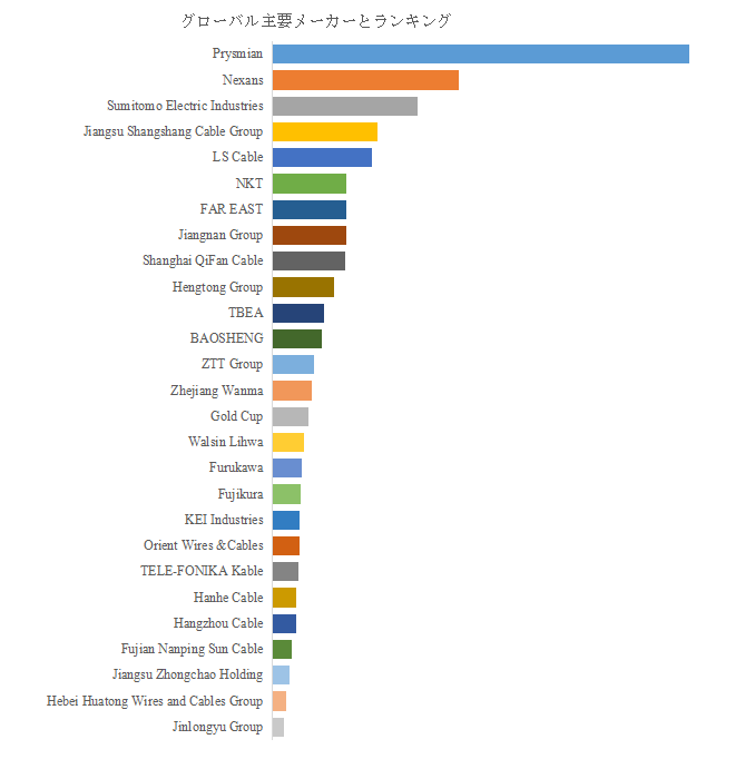 注:ケーブルには電力ケーブル、通信ケーブル、電力機器用電線ケーブル、裸電線など多様な種類が含まれる。複数製品間では統計単位に差異が存在する。これらの差異により、販売量を対比しても有意義な結果を得ることができない。したがって、本報告書には販売量および価格の統計データを含まない。