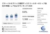 2026年2月13日に、YH Research株式会社(本社:東京都中央区)が発行した「グローバルセラミック真空ディスクフィルターのトップ会社の市場シェアおよびランキング 2026」によると、本調査レポートでは、セラミック真空ディスクフィルター市場の現状、定義、分類、用途、産業チェーン構造を総合的に分析し、開発方針、製造プロセス、コスト構造についても詳細に説明します。セラミック真空ディスクフィルター市場の成長動向と今後の市場予測に加え、技術革新や市場競争環境、消費者行動の変化など市場に影響を与える重要な要因を考察します。また、主要生産地域、消費地域、及び主要企業の生産・消費の観点から、市場動向を深く理解し、企業が新規市場の開拓や競争力強化に向けた戦略を立てるための有益な情報を提供します。