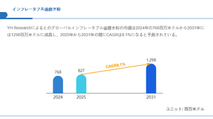 2025年9月26日、YH Research株式会社(本社:東京都中央区)は、調査レポート「グローバルインフレータブル歯磨き粉市場のトップ企業ランキングと市場シェア 2025」を発行しました。本レポートでは、2020年から2031年にかけてのインフレータブル歯磨き粉市場に関する詳細なデータを提供しています。用途ごとの製品トレンドや市場規模を明らかにし、主要な製造・消費地域における市場の動向についても詳しく分析しています。売上、販売量、平均価格、年平均成長率といった市場規模の指標を分析するとともに、主要企業の市場シェアやランキングを詳しく評価。最後、技術革新や新製品の市場投入の動向を分析し、企業の戦略策定に活用できる情報を提供しています。 YH Researchによるとのグローバルインフレータブル歯磨き粉の市場は2024年の768百万米ドルから2031年には1298百万米ドルに成長し、2025年から2031年の間にCAGRは8.1%になると予測されている。 ◇当レポートの詳細・無料目次