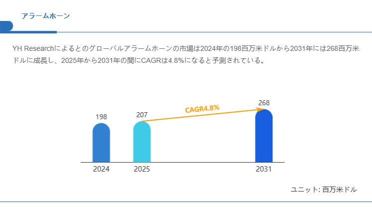 > アラームホーン市場、CAGR4.8%で拡大し2031年には268百万米ドルへ
