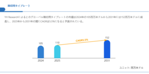 YH Research(YHリサーチ)は、グローバルビジネスをサポートする市場調査と情報提供の企業です。業界調査レポート、カスタムレポート、IPOアドバイザリーサービス、ビジネスプラン作成など、企業の成長と発展を支援するサービスを提供しています。 世界5カ国にオフィスを構え、100カ国以上の企業に正確で有益なデータを提供し、業界動向や競合分析、消費者行動分析などを通じて、企業が市場の変化に迅速に対応できるようサポートしています。