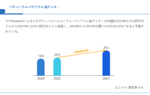 YH Researchによるとのグローバルジルコニウム-バナジウム-鉄ゲッターの市場は2024年の19.8百万米ドルから2031年には29.3百万米ドルに成長し、2025年から2031年の間にCAGRは5.8%になると予測されている。